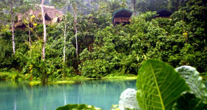 We also have a honeymoon suite for couples. Our honeymoon suite is set slightly further in the jungle. The honeymoon suite features a fire-heated outdoor jacuzzi, private sun deck, and tropical garden.