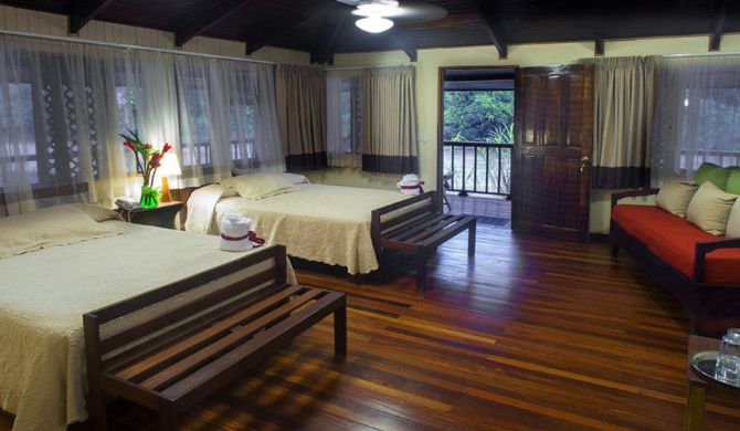 Chilamate Room – This room offers two king beds, a dressing and sitting area, air conditioning, desk and free WiFi, and it faces the Sarapiquí River.